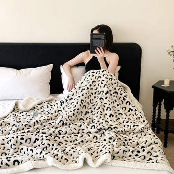 2025 Nueva manta catiónica de doble capa Jacquette Taffy Fleece de cordero con borde cruzado de doble capa con patrón impreso