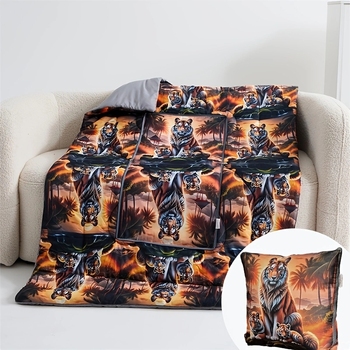 Groothandel Op Maat Milieuvriendelijk Polyester Tijgerdierprint Opvouwbare Deken Kan Worden Omgevormd Tot Een Comfortabel Kussen